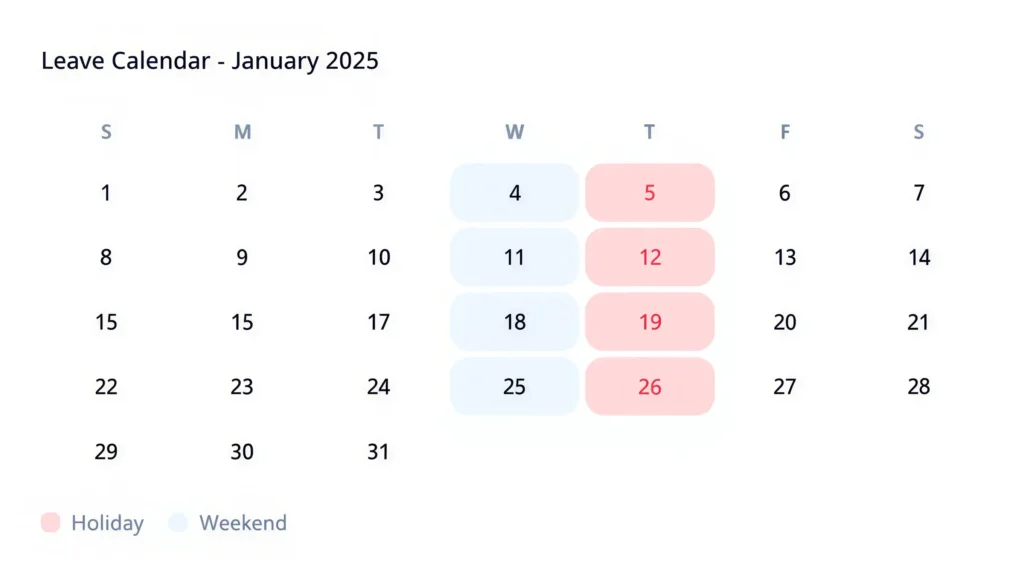 Automatically apply sandwich leave deduction rules for holidays between leave periods.
